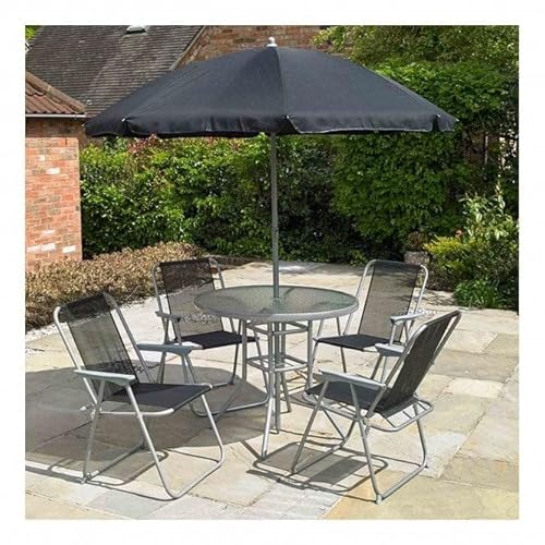 Garden Mile Modern Folding 6 Piece Furniture Set - Stylish Weatherproof Topped Table, Parasol Umbrella and 4 Chairs Set - for Balcony, Patio and Garden Decor