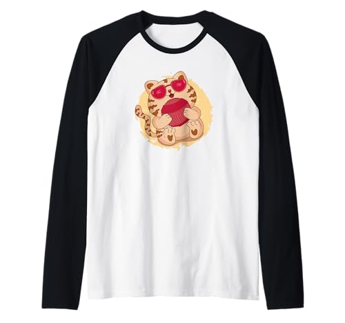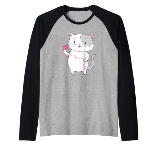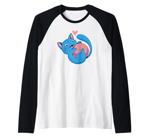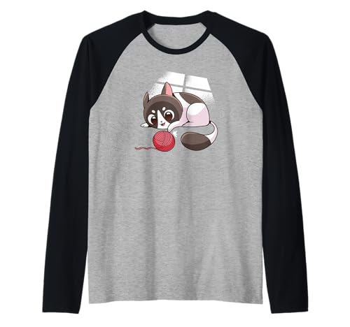 Cat with Yarn Ball - Funny Cat Raglan Baseball Tee