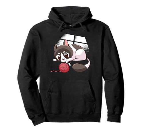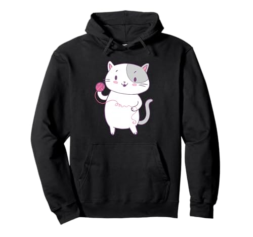 Cat With Yarn Ball - Funny Cat Pullover Hoodie