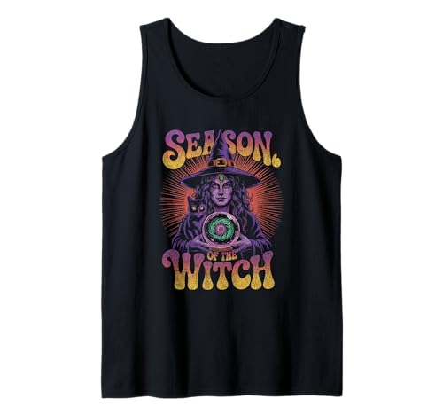 Witch with Crystal Ball and Cat Radiating Cosmic Power Tank Top