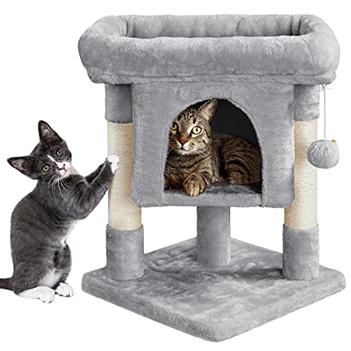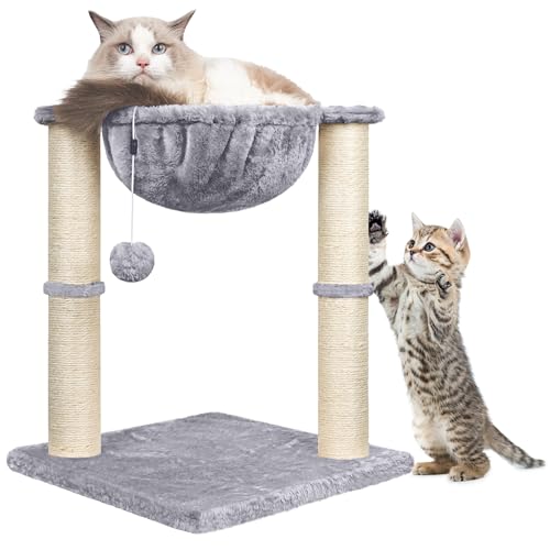 Cat Scratching Post, 50cm Cat Tree with Cat Hammock Bed, Scratching Posts for Indoor Cats with Hanging Ball Toy, Small Cat Tree for Kitten Pets Playing and Relaxing, Grey