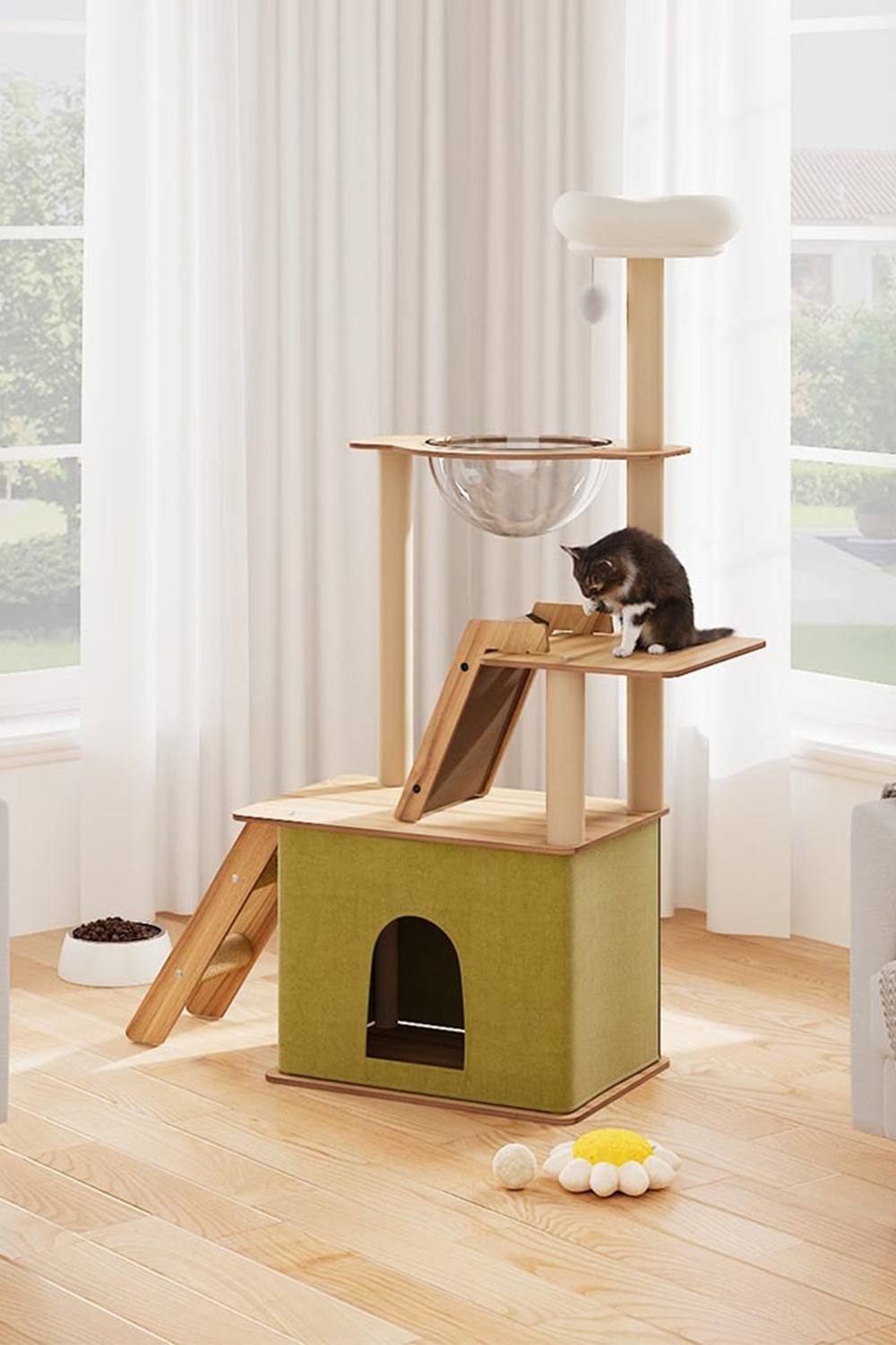 Living and Home Deluxe Cat Tower Set with Hanging Ball Cat Grab Board in Green