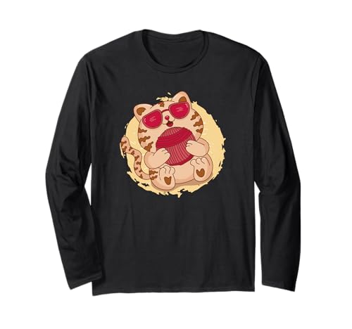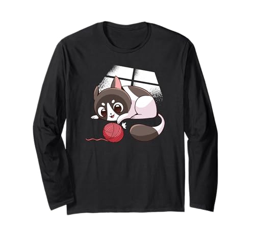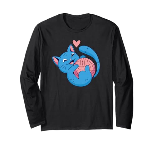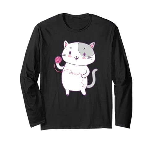 Cat with Yarn Ball - Funny Cat Long Sleeve T-Shirt