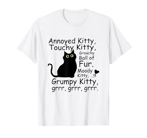 Annoyed Kitty Touchy Kitty Grouchy Ball of Fur Black Cat T-Shirt
