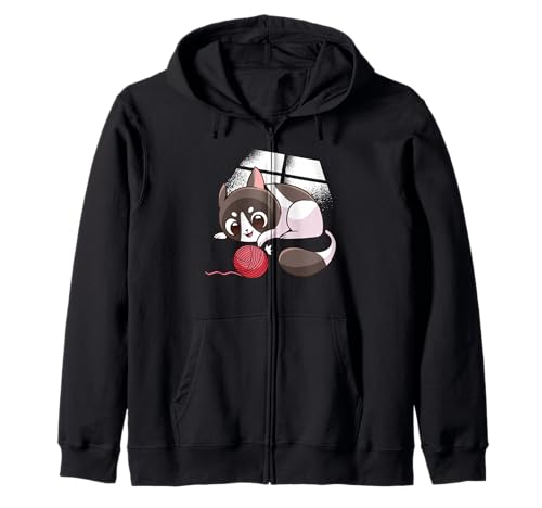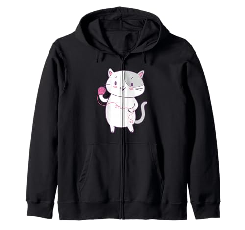 Cat With Yarn Ball - Funny Cat Zip Hoodie