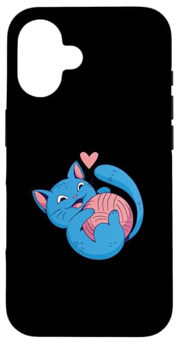 Cat With Yarn Ball - Funny Cat Case for iPhone 16 Plus