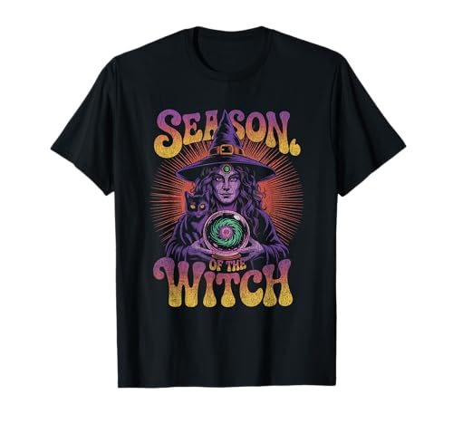 Witch with Crystal Ball and Cat Radiating Cosmic Power T-Shirt