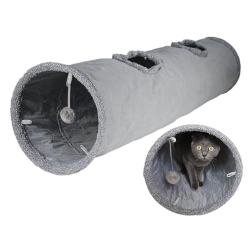 ZYYRSS Collapsible Cat Tunnel Toy, 30x130cm Cat Play Tunnel, Cat Plush Collapsible Tunnel with 2 Holes and Suspended Ball Cat Toy for Indoor Kittens, Puppies, Bunnies, Rabbits and Small Dogs (Gray)