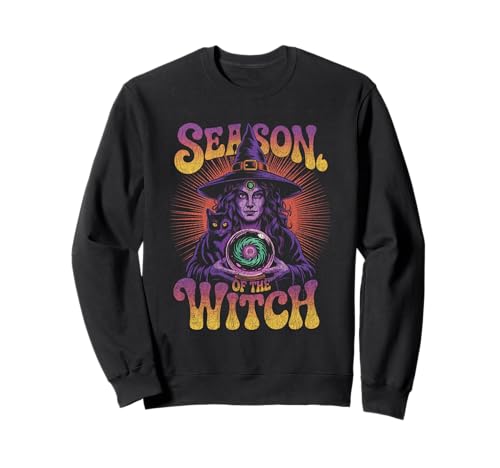 Witch with Crystal Ball and Cat Radiating Cosmic Power Sweatshirt
