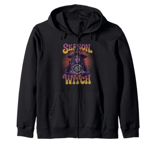 Witch with Crystal Ball and Cat Radiating Cosmic Power Zip Hoodie