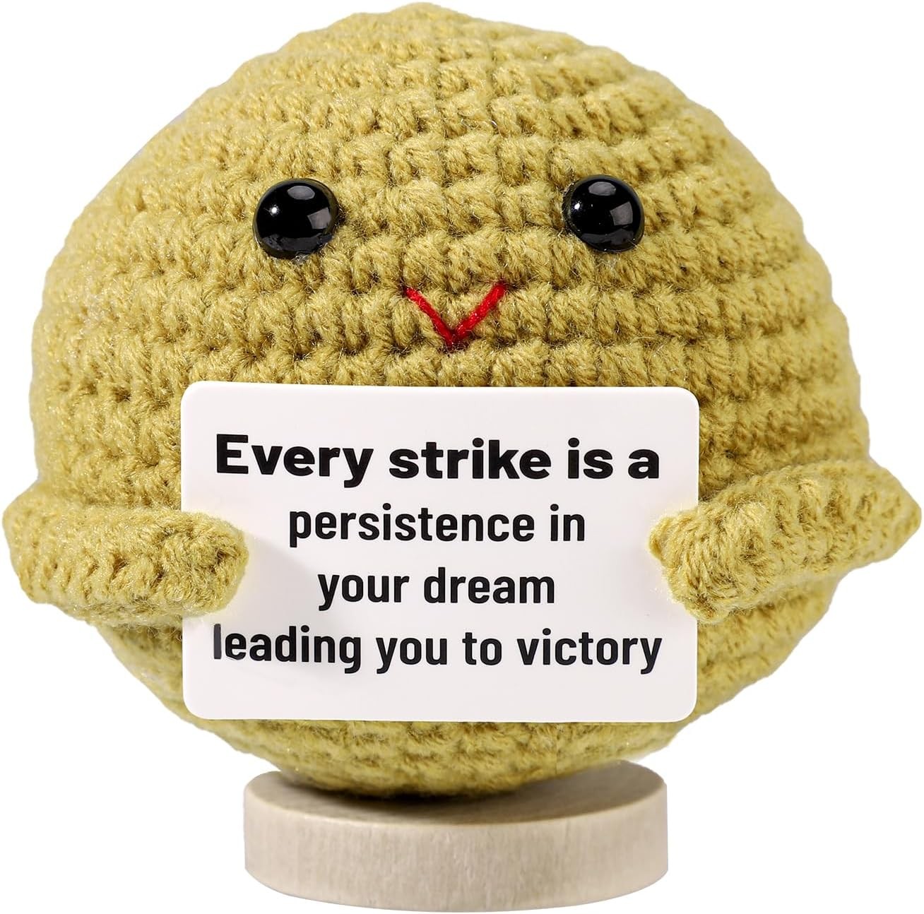 Crochet Ping Pong Ball, Funny Positive Ping Pong Ball with Positive Card & Wood
