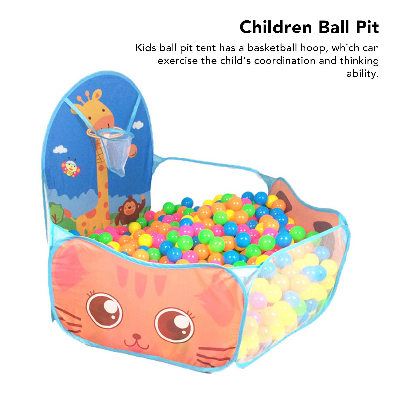 Kids Ball Pit Folding Cartoon Giraffe Baby Play Pool Tent With Basketball Hoop