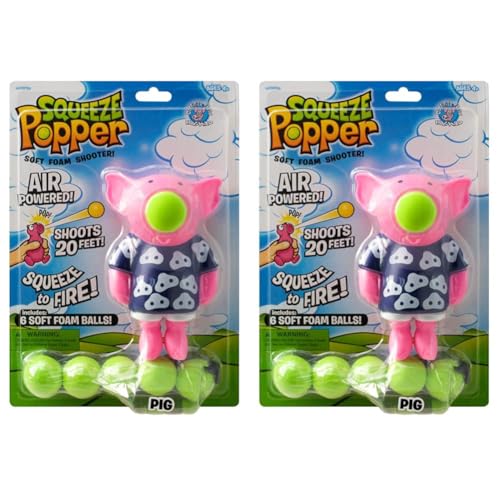 Cheatwell Games Pig Popper (Pack of 2) - Shoots Foam Ball Up to 20 Feet - Includes 12 Soft Foam Balls & Carry Net - Ages 3+