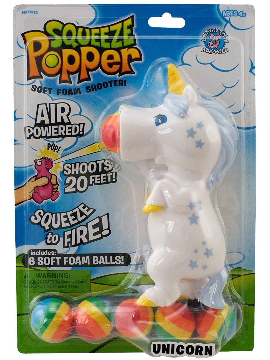 Unicorn Popper White Squeeze Soft Foam Ball Shooter - Hog Wild Cheatwell Games