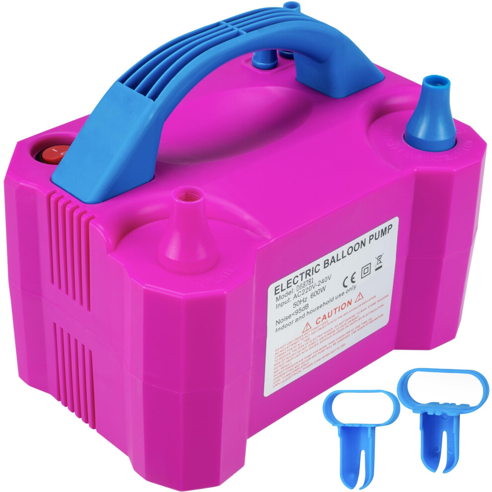 PlusFive Electric Balloon Pump UK Plug, Electric Air Pump for Long Balloons & Foil Balloons, Portable Inflatable Pump for Birthday Party Wedding Christmas Ballon Decorations (Pink and Blue)
