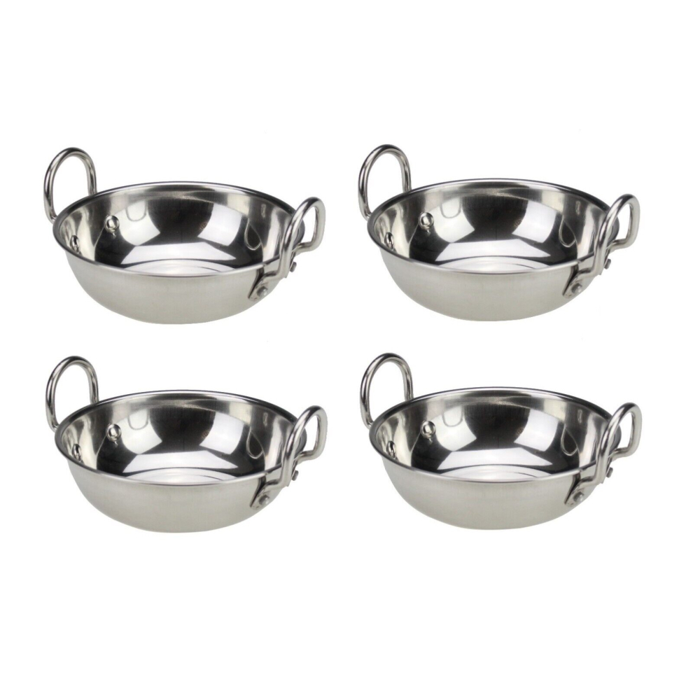 Set of 4 Stainless Steel Balti Serving Dish, 15cm, Indian Cuisine, Curries