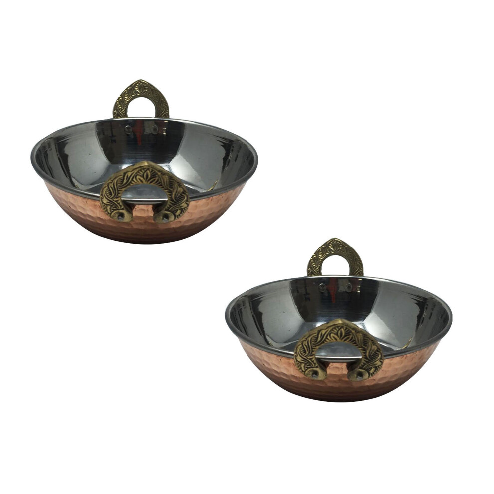 New 17CM BALTI Dish KARAHI Metal Curry Serving Copper Dishes Stainless Steel
