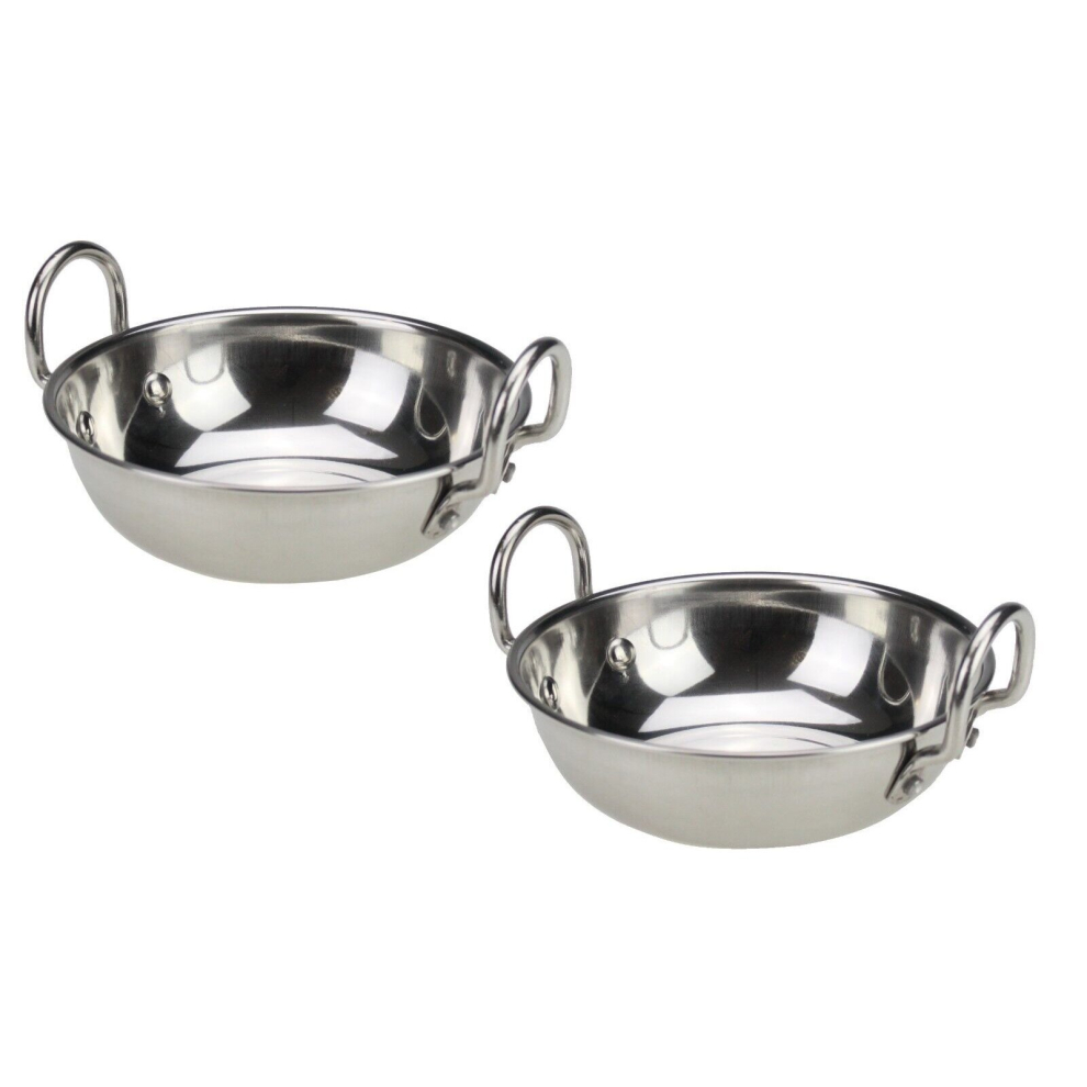 Set 2 Stainless Steel Balti Serving Dish 20Cm/7.75" Curry Bowl, Karahi, Kadai, I