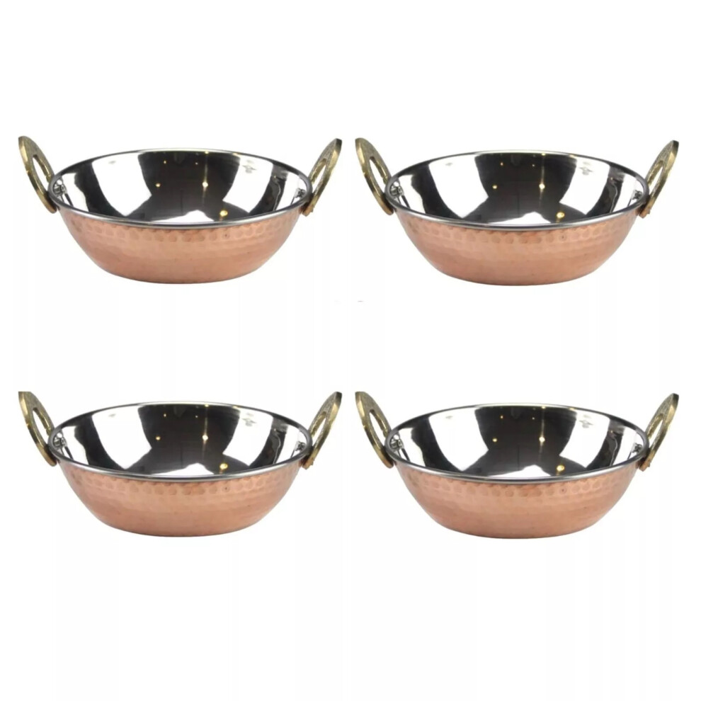 (13cm - Set of 4) Hammered Copper Balti Dish Indian Curry Kadai Karahi Bowl Traditional Set 2/4x