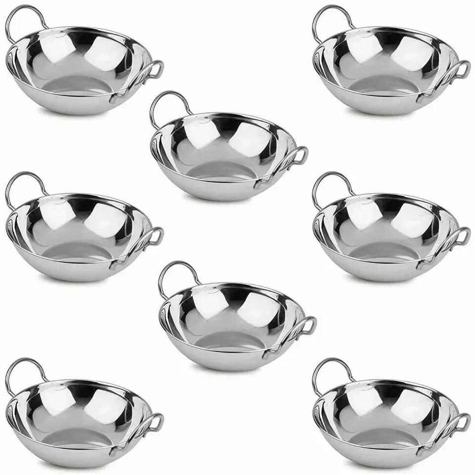 8 pcs Stainless Steel Indian Curry Bowl Karahi Balti Food Serving Dish Set 18 cm