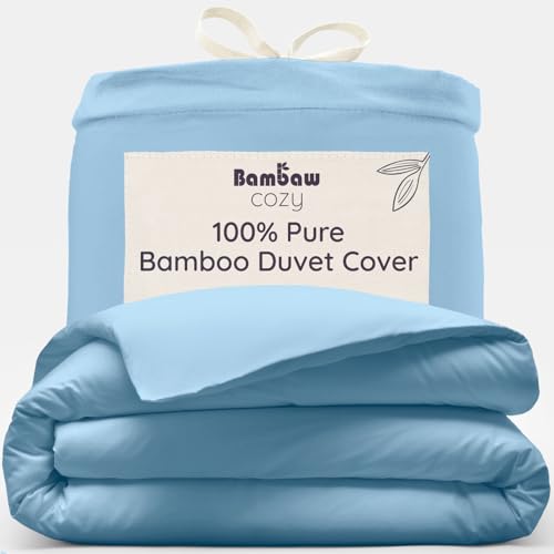 Bambaw Bamboo Duvet Cover King Size, 240x220 cm, Anti Allergy Duvet Cover, Bedding Bamboo Fiber, Soft & Breathable Cool Sheets for Summer, Antibacterial Cooling Bedding King Size (Light Blue)