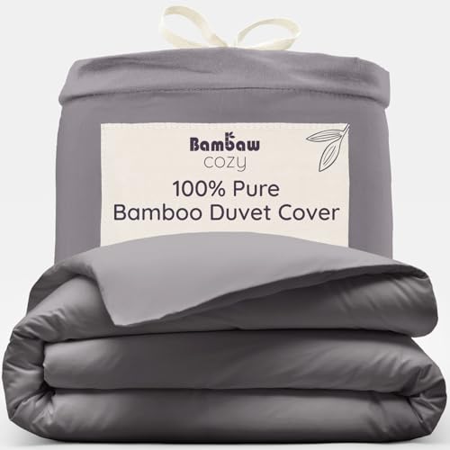 Bambaw Bamboo Double Duvet Cover, 200x200 cm, Cooling Bed Sheets for Summer, 100% Bamboo Bedding Double, Anti Allergy Bedding, Soft & Breathable Cold Sheets for Sleeping 200x200 cm (Dark Grey)