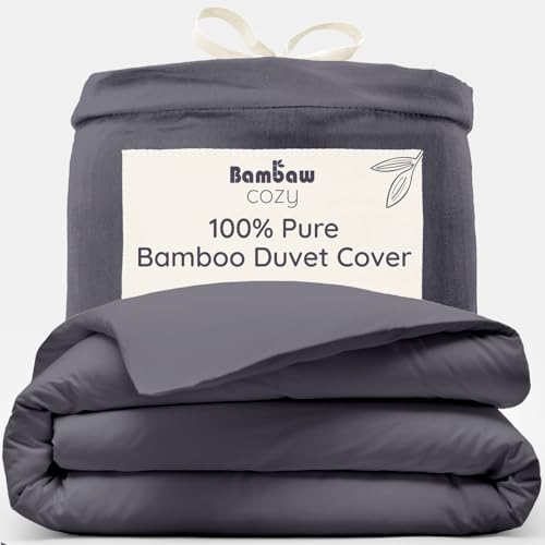Bambaw Bamboo Duvet Cover Single, 135x200 cm, Cooling Bed Sheets, 100% Bamboo Bedding Single, Mite-Resistant Anti Allergy Bedding, Soft, Breathable & Cool Summer Duvet Cover 135x200 cm (Charcoal)