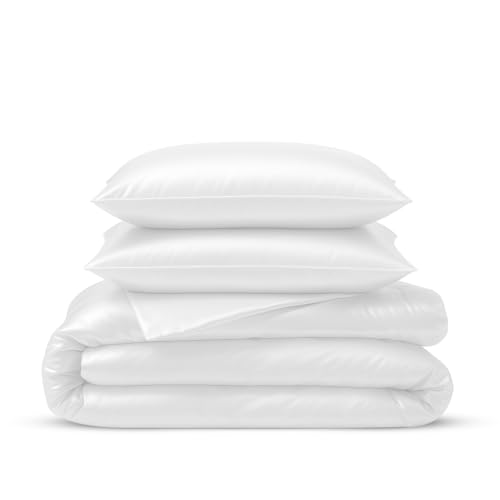 Pure Bamboo Queen Duvet Cover 3 Piece Set Genuine 100% Organic Viscose Derived from Bamboo Luxuriously Soft and Cooling Includes 2 Pillowcases (Que