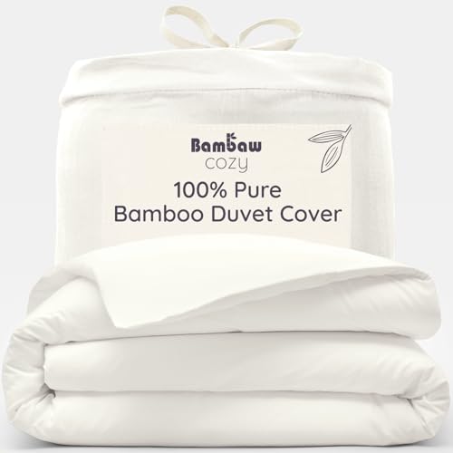 Bambaw King Size Bamboo Duvet Cover, 240x220 cm, Anti Allergy Bedding, 100% Bamboo Sheet, Soft & Breathable Cool Sheets for Summer, Cooling Bedding King Size, Summer Duvet Cover 240x220 cm (White)