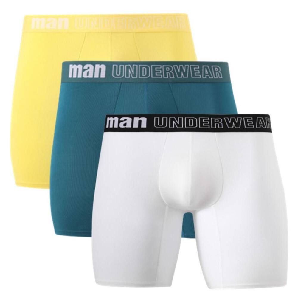 (yellow,green, XL) 3 Pieces Big Size Men Underwear Boxers Sexy Briefs Panties Fashion Knickers Bamboo Fiber Long Underpant Antibacterial Undies