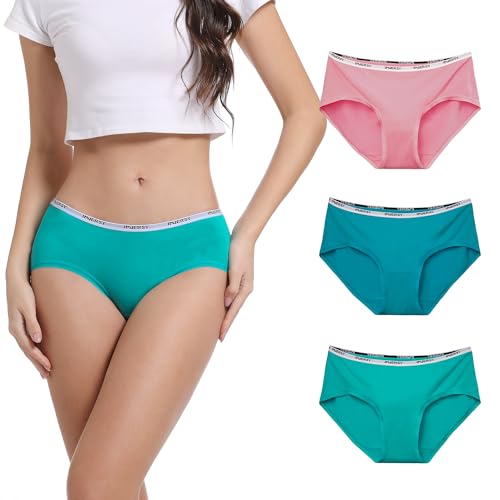 INNERSY Women's Knickers Bamboo Ladies Pants Midi Briefs Breathable Underwear Basic Panties 3 Pack (12, Blue/Green/Pink)