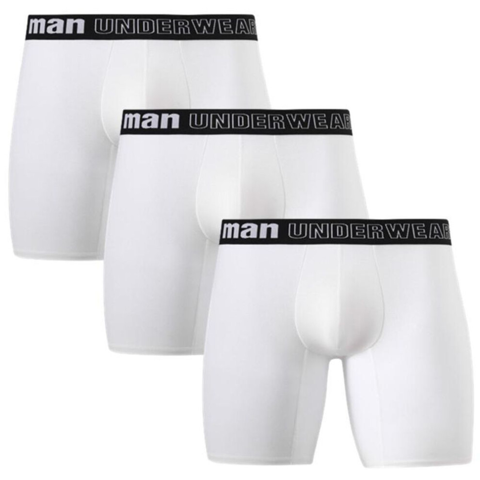 (white, L) 3 Pieces Big Size Men Underwear Boxers Sexy Briefs Panties Fashion Knickers Bamboo Fiber Long Underpant Antibacterial Undies