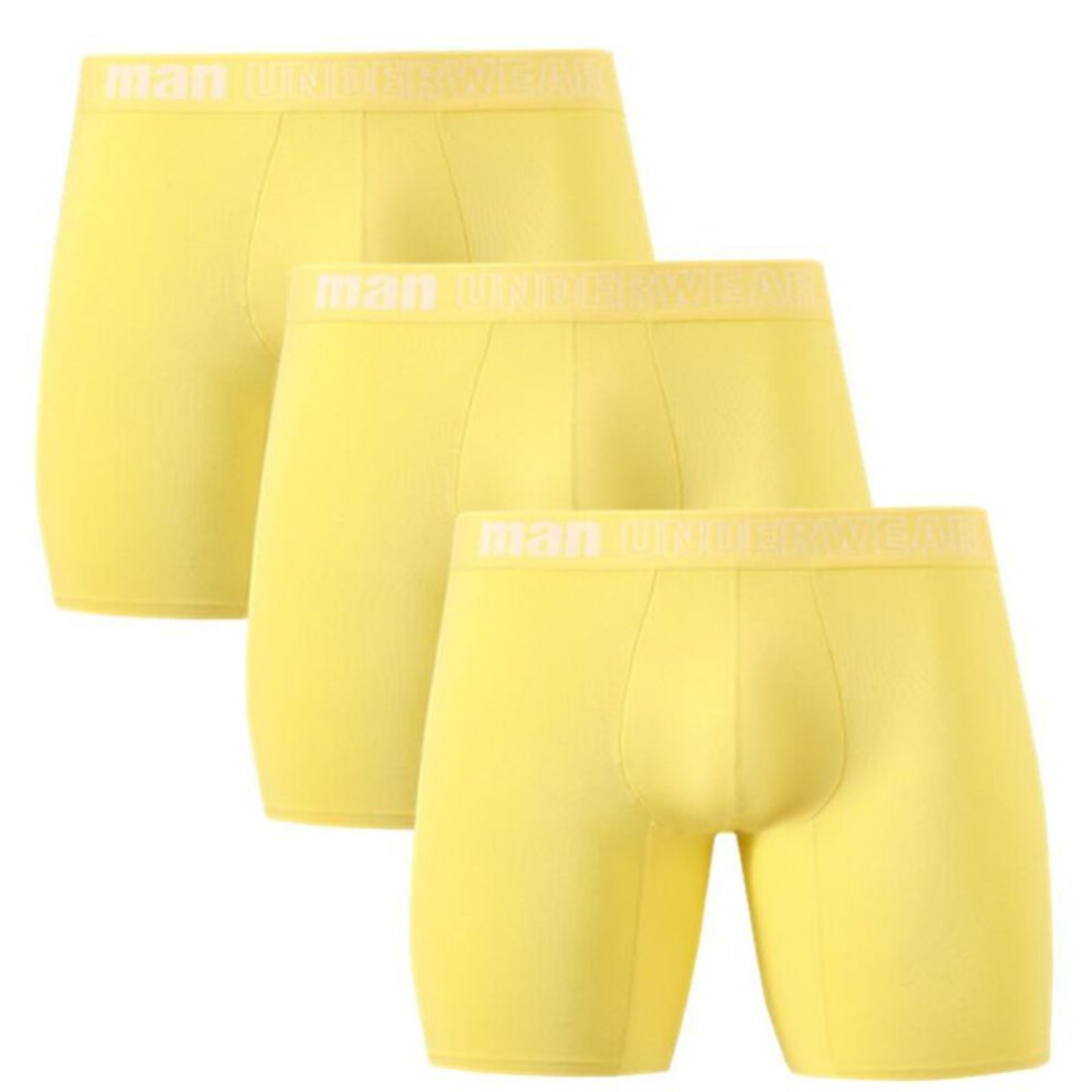 (yellow, M) 3 Pieces Big Size Men Underwear Boxers Sexy Briefs Panties Fashion Knickers Bamboo Fiber Long Underpant Antibacterial Undies