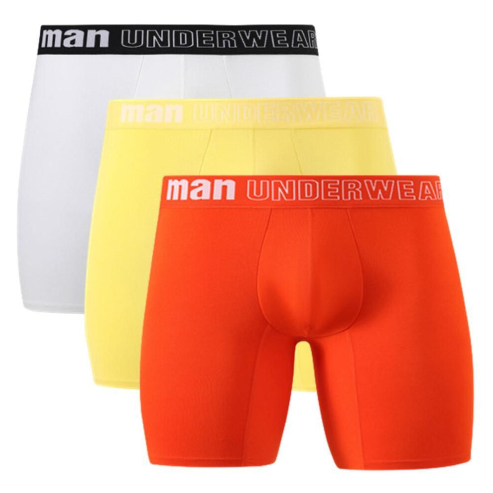 (orange,yellow, 3XL) 3 Pieces Big Size Men Underwear Boxers Sexy Briefs Panties Fashion Knickers Bamboo Fiber Long Underpant Antibacterial Undies