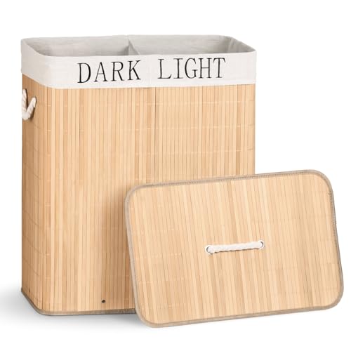Warmiehomy Bamboo Laundry Basket 2 Compartments Laundry Basket with Lid Foldable Washing Basket 72L Large Laundry Hamper with Detachable Inner Bag & Handle for Laundry Room,Bedroom