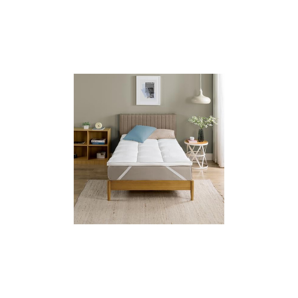 Zinus Single Cooling Mattress Topper (90 x 190 cm) – 5 cm Thick Bamboo Mattress Topper with Elastic Straps, Machine Washable – White