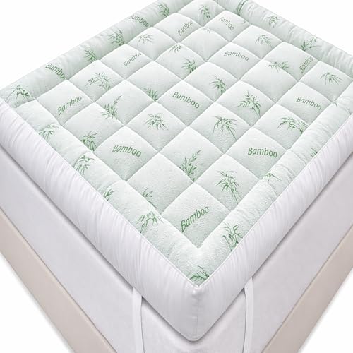Bamboo Mattress Topper King Size, Extra Thick Breathable, Soft Quilted Fitted Mattress Cover with 1000 GSM Down Alternative Fill (8-21”Deep Pocket)
