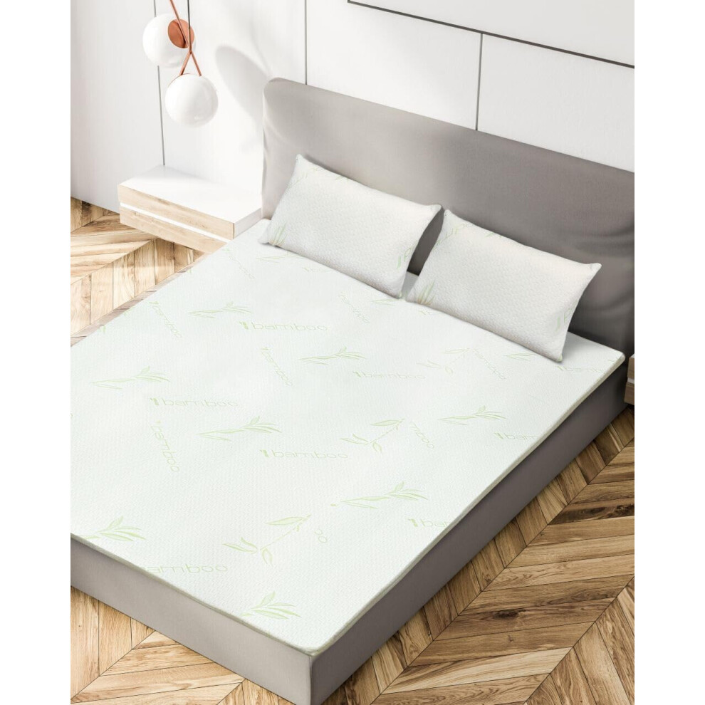 Bamboo Mattress Topper 2CM Memory Foam Bed Cooling Comfort Breathable Double UK