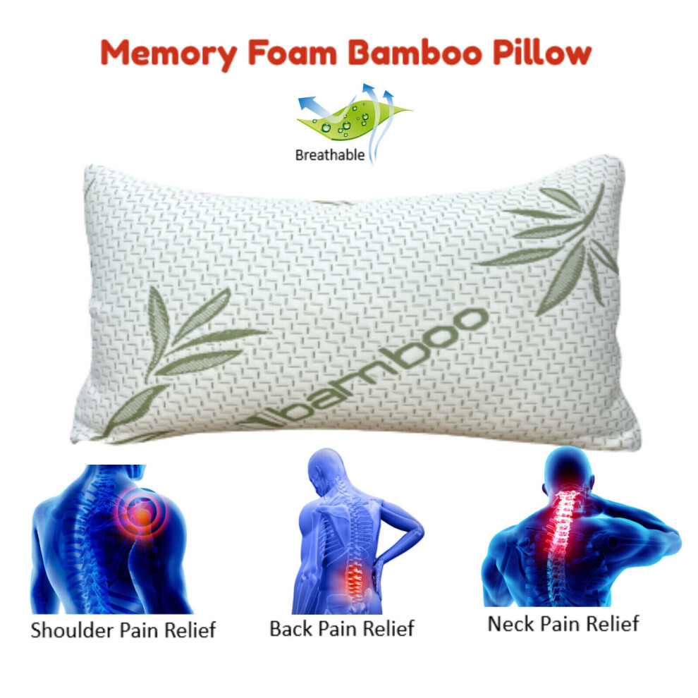 2x New Luxury Bamboo Memory Foam Pillow, Anti-Bacterial Orthopedic Head support