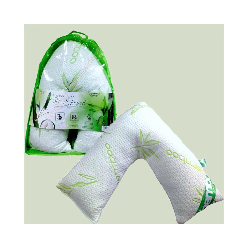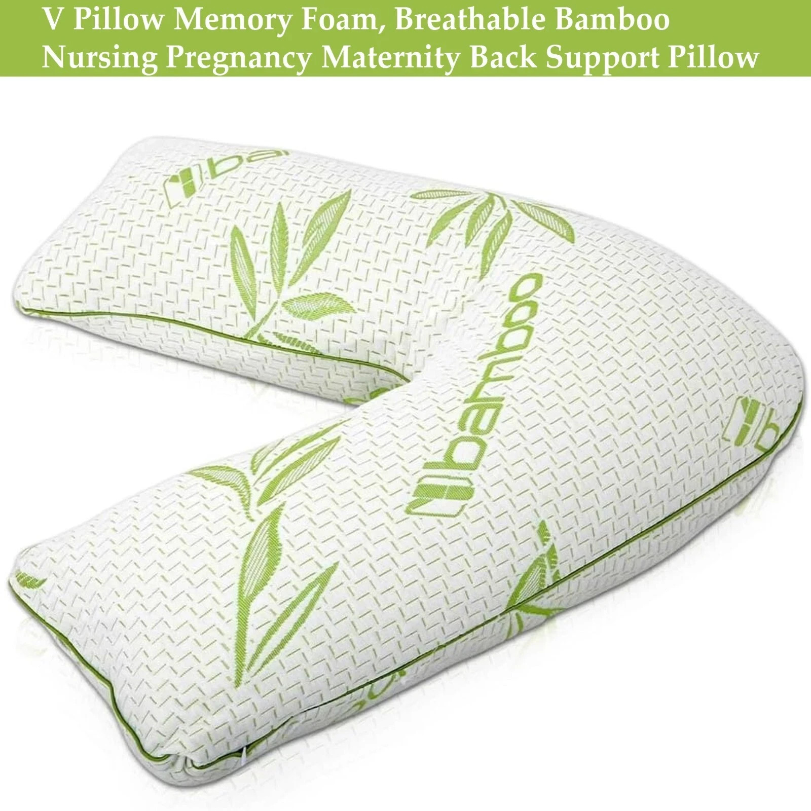 Bamboo V Shape Memory Foam Pillow Orthopedic Back Maternity Pregnancy Nursing