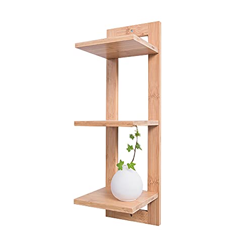 Floating Wall Shelf, Bamboo Multifunctional Display Shelf, Apply to Living Room, Kitchen, Corridor, Entrance, Bathroom/Wood Color / 20x20.2x66cm