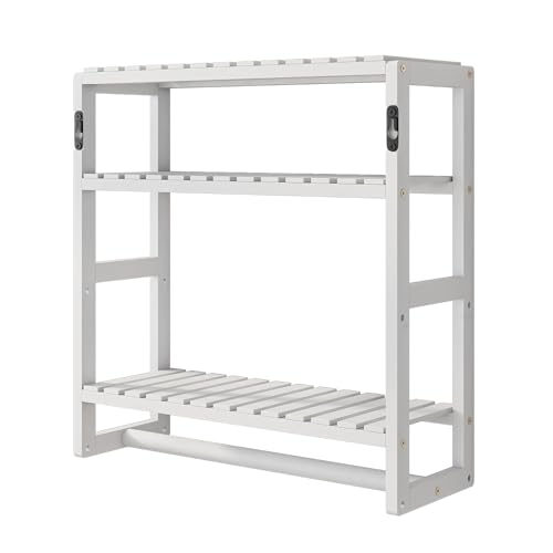 3-Tier Wall Mount Bamboo Shelf, Adjustable Bathroom Organizer Shelves for Storage, Multifunctional 3 Layer Utility Storage Bread/Seasoning Display Rack for Kitchen Living Room Entryway Shop (White)