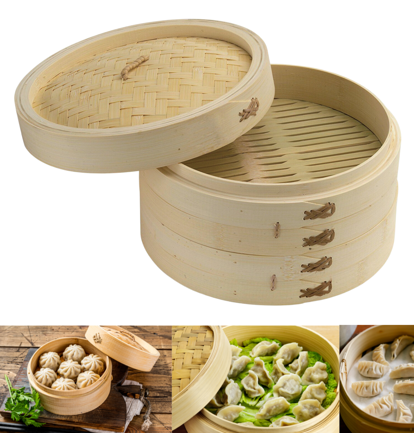 2 Tier Bamboo Steamer Food Cooker Handmade Chinese Steamer Basket 10 inch 25cm