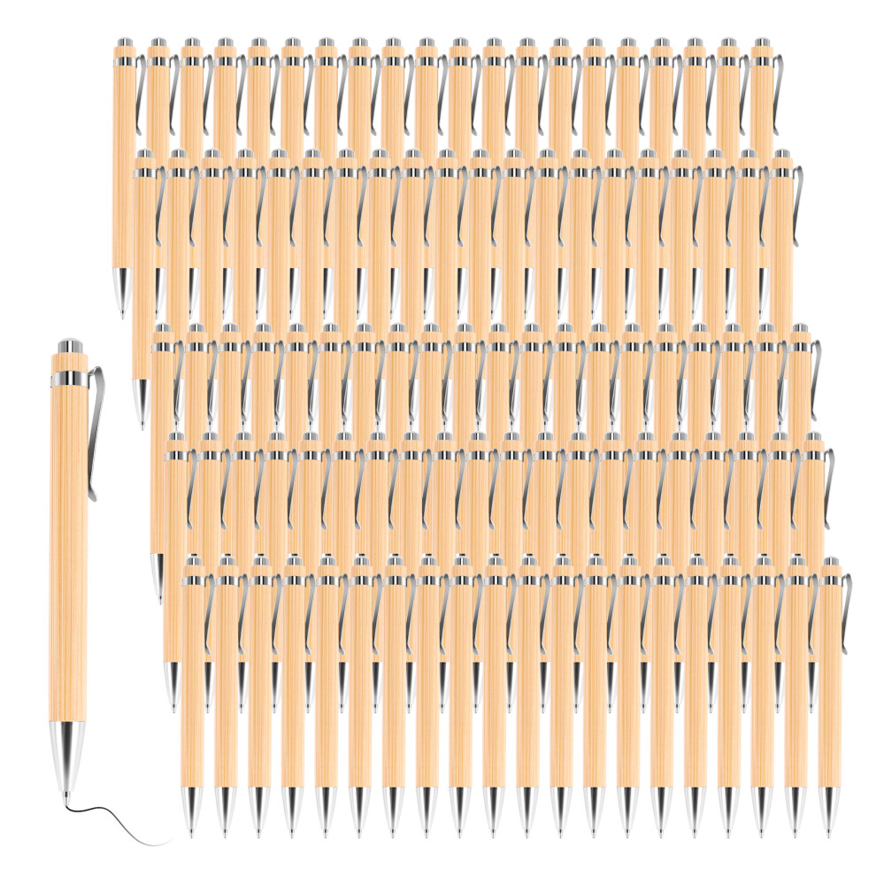 100 Pcs/Lot Bamboo Ballpoint Pen Stylus Contact Office & School Supplies Pens Writing Gifts-Black Ink