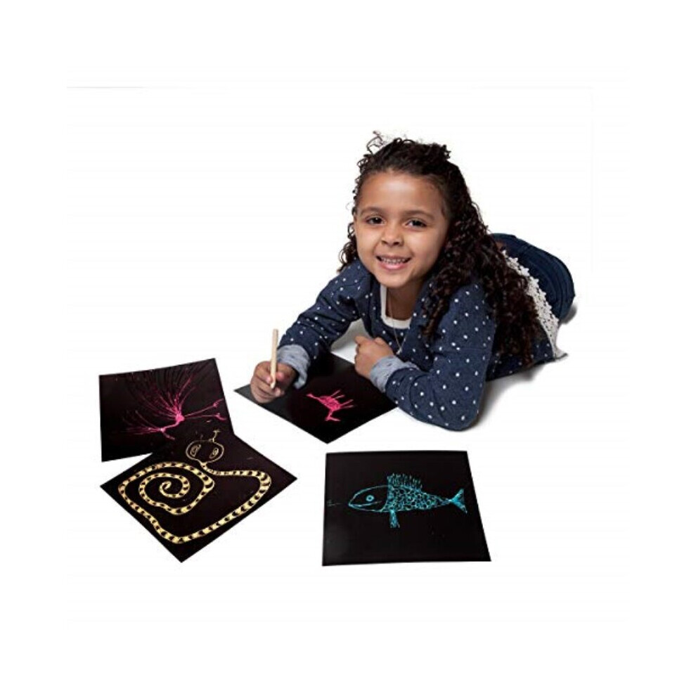 eeBoo Foil Scratch Art Papers, 15 Holographic Sheets and Bamboo Stylus
