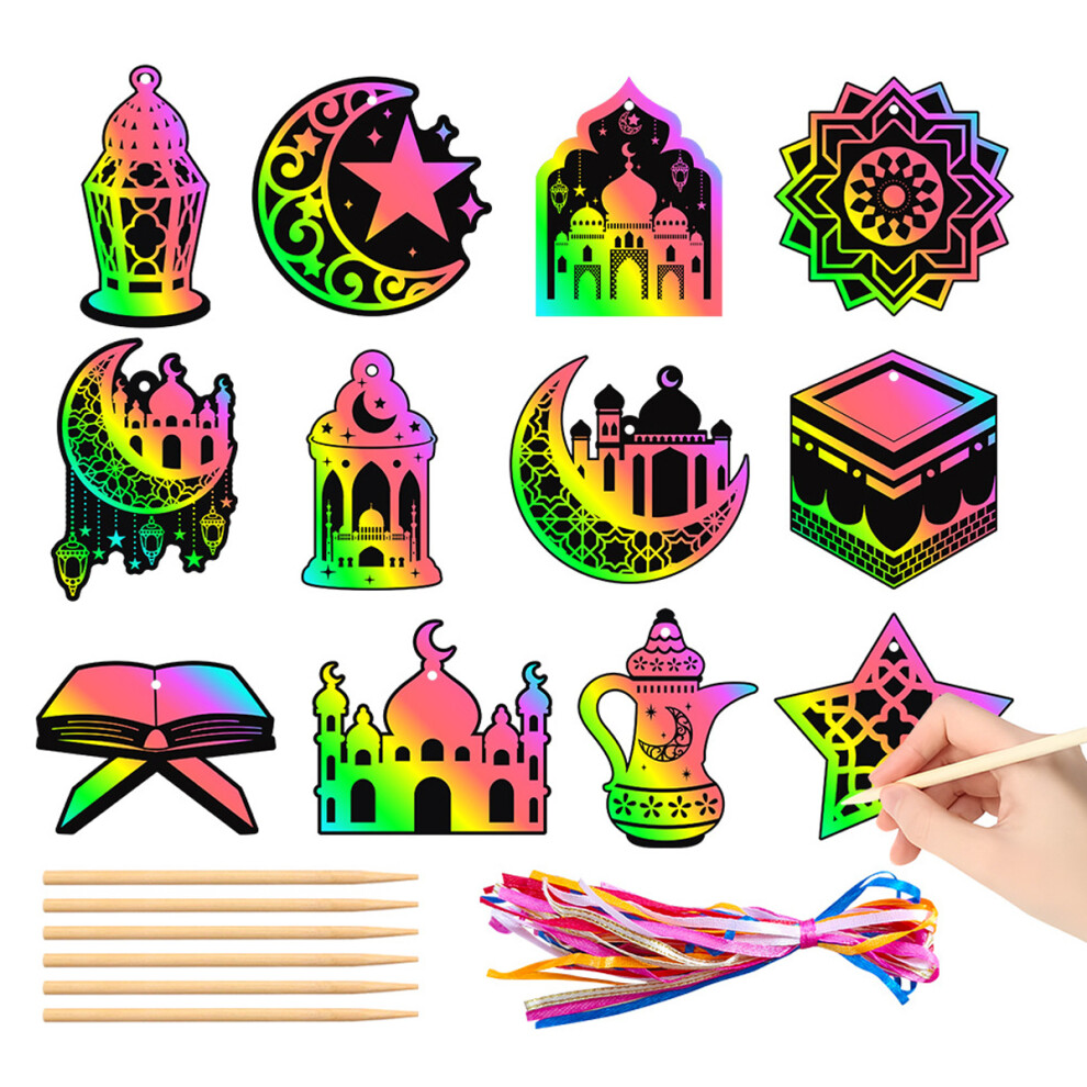 Hanukkah Scratch Art Kit, Eid Mubarak Magic Color Scratch Off Cards Rainbow Reveal with Bamboo Stylus, Safety Material & Special Design Fun Craft for