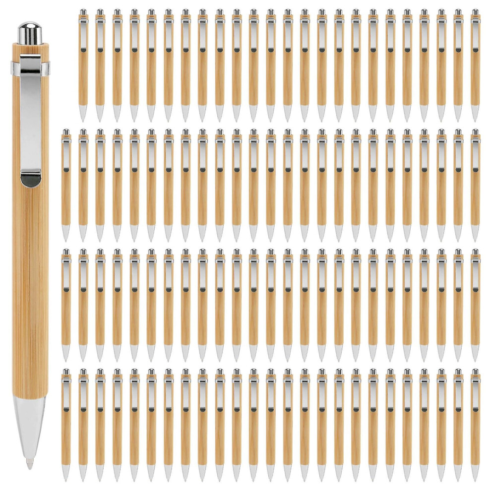 100 Pcs/Lot Bamboo Ballpoint Pen Stylus Contact Office & School Supplies Pens Writing Gifts-Blue Ink