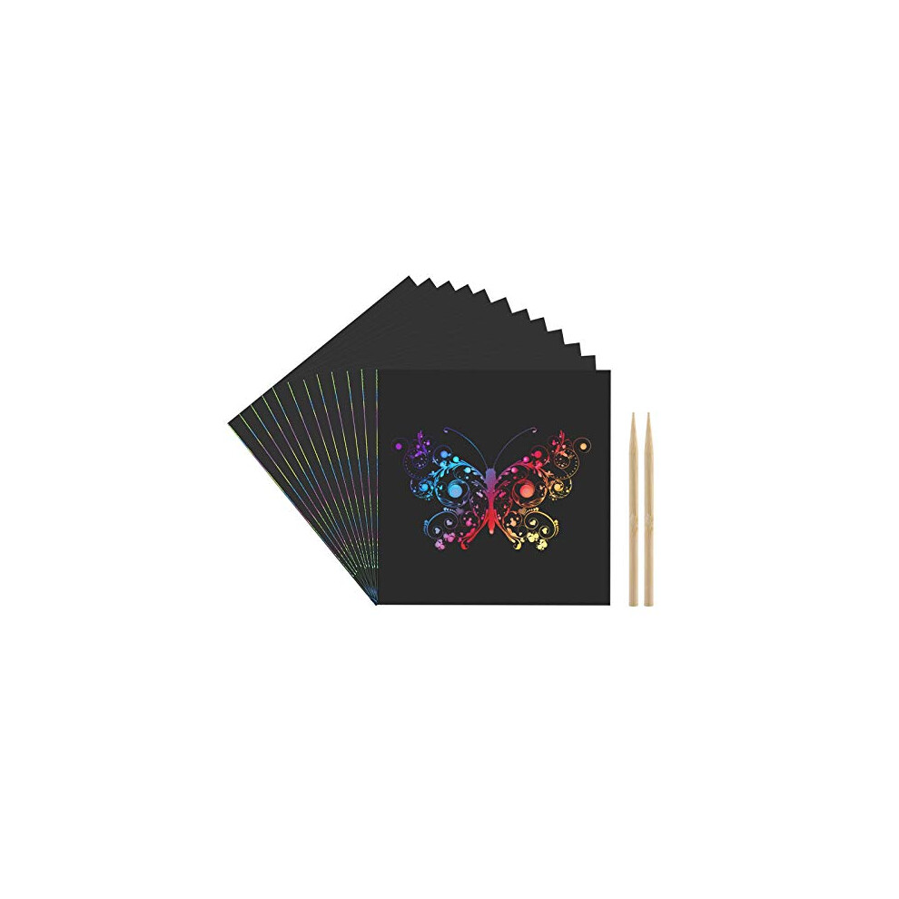 36 PCS Butterfly Scratch Cards - Scratch Art Butterfly Party Favors & Crafts for DIY Crafts Birthday Party, Halloween, Christmas - 12 Styles, Bamboo Stylus Included