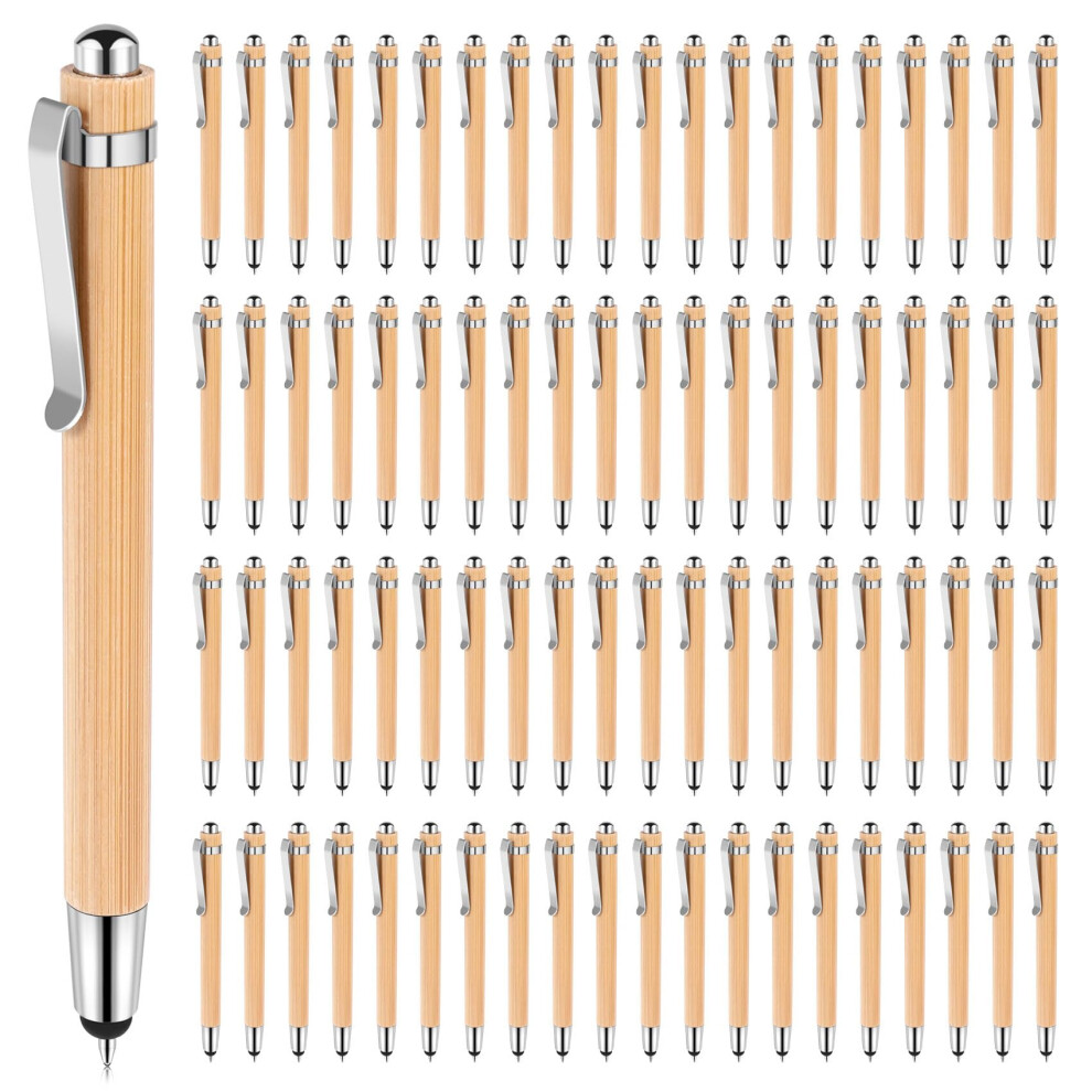 NIZEAMI 100 Pcs Ballpoint Pens, 2 in 1 Stylus Pens Stylish Bamboo Ballpoint Pens for School Home Ofiice Writing & Touch Screens