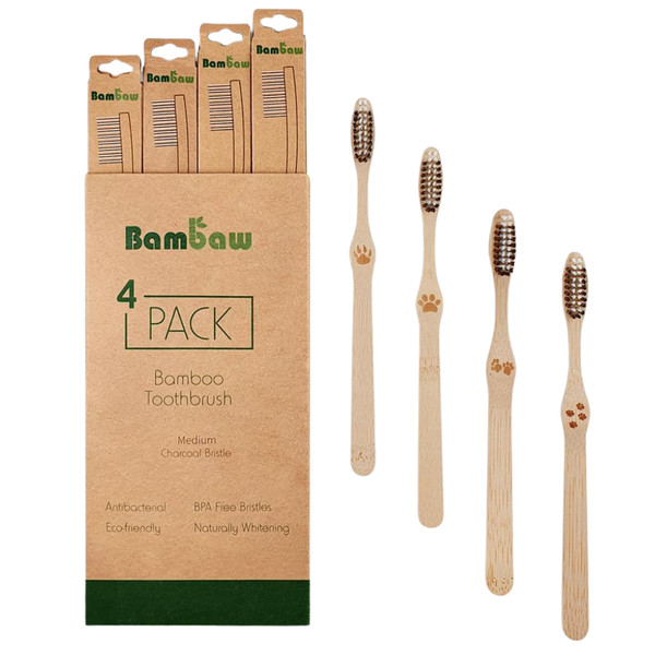 4 Pack Medium Bamboo Toothbrushes (Bambaw)